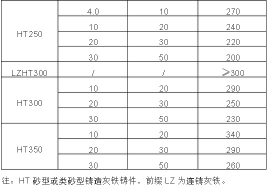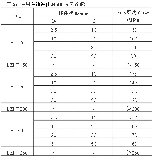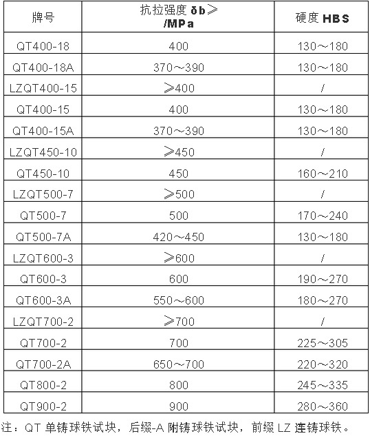 5、 從抗拉強(qiáng)度δb來看,球墨鑄鐵件δb數(shù)值在400~900MPa之間,灰 鑄鐵件δb數(shù)值在80~340MPa之間, δb可用便攜式里式硬度計測量。 我們采用第5種方法,即δb檢測法。  附表1:常用普通和低合金球墨鑄鐵件的δb參考數(shù)值: